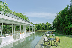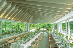 自然豊かな鶴見緑地公園の特等席のようなロケーションにおいて、花博ゆかりの場所としてハーブや彩り豊かなエディブルフラワーをあしらったメニューなどをご用意。